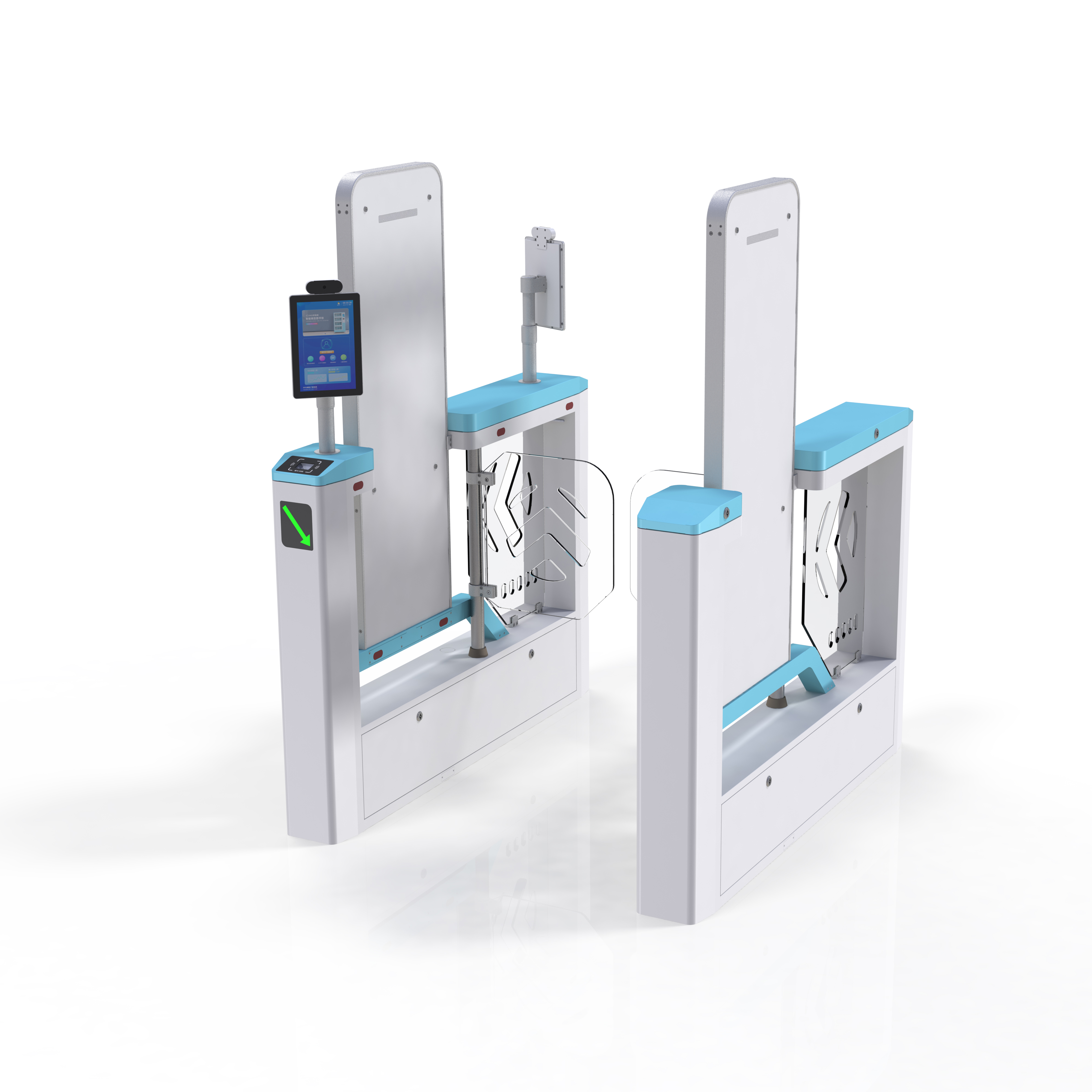 东芯RFID超高频闸机智能通道,采用双向摆闸,并集成高频三维感应技术,能在感应区内三维空间上任意方向快速检测开云手机web版登录入口,设备支持符合1S018000-6C标准的多家厂商的开云手机web版登录入口。支持主动报警和被动报警两种模式,支持 EPC报警模式,闸机报警时,摄像机抓拍人脸。闸机智能通道可以密集安装,同一出入口可无限联并排使用,通道读卡距离最宽可达80~140cm,建议通道宽度80cm或者100cm。本产品广泛应用于图书馆、档案室进出口防盗等领域
