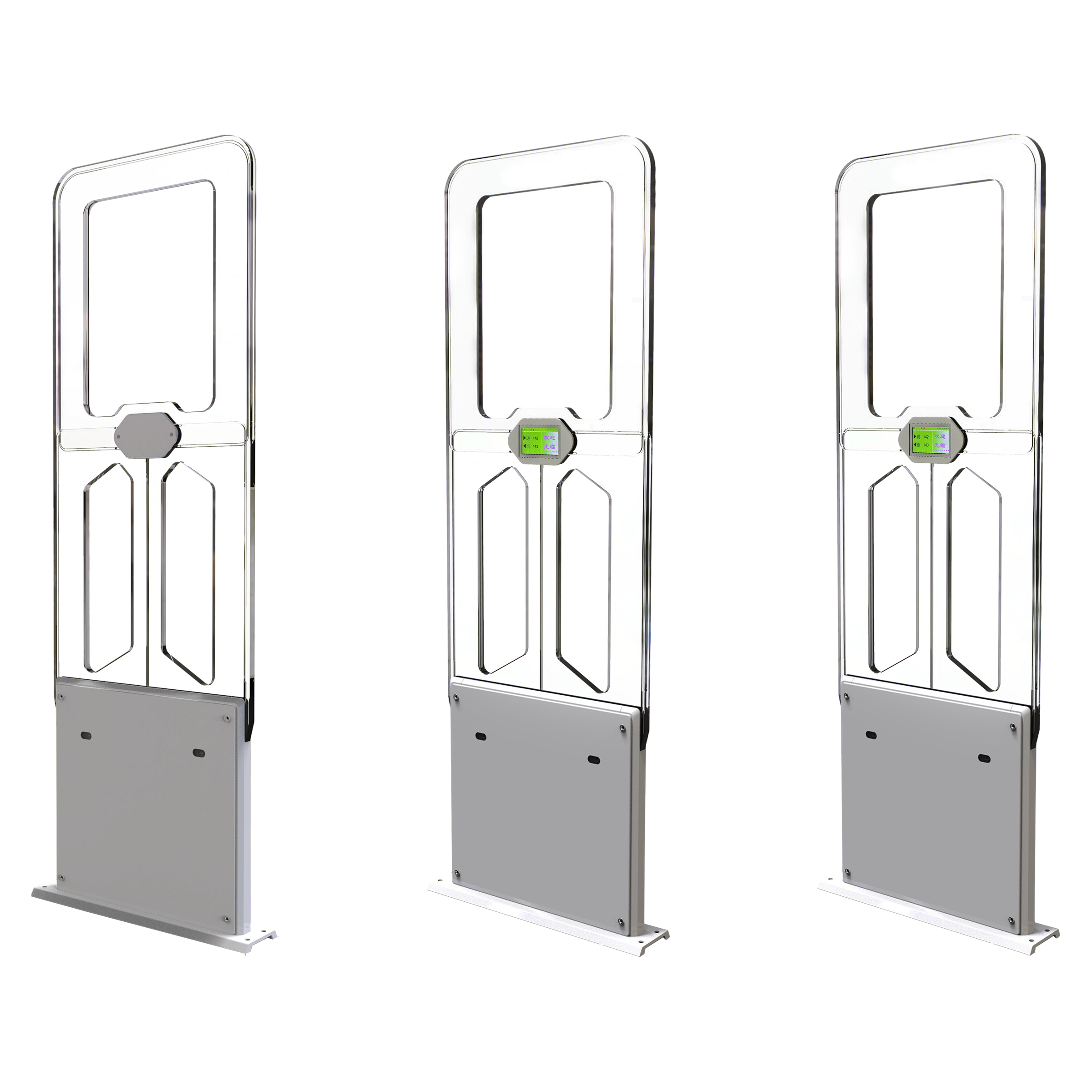 屏显功能:自主创新自带4.3寸显示屏功能(包含:日期、时间、人员进出流量数据、定制使用方LOGO图文、报警图文、安全门编号)