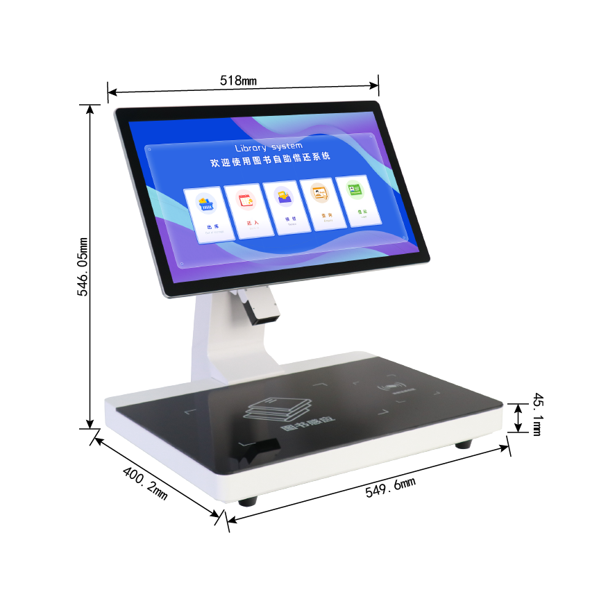 一体式馆员工作站是一种新型的智能化设备,配备触摸显示屏或简单操作的人机交流界面、图形界面,通过协议或其他网络及专用接口与图书馆自动化系统数据相连接,馆方工作人员对图书进行标签加工时,使用设备对粘贴在图书上的RFID开云手机web版登录入口进行加工,通过条码扫描器扫描图书上的条形码,同时识别图书上的开云手机web版登录入口,对开云手机web版登录入口和图书条码进行标签初始化操作。图书加工完成后上架,读者可以通过自助借还设备对图书进行自助借还流通操作。平时馆方工作人员不用设备进行图书加工时,可以切换到自助借还软件功能,软件功能切换后,设备可作为自助借还机使用。